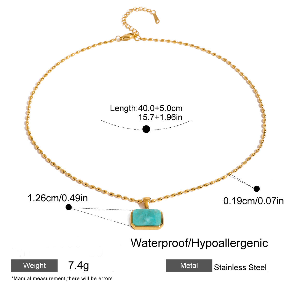 Thin, gold chain with single turquoise stone-- these piece is great on its own or layered!